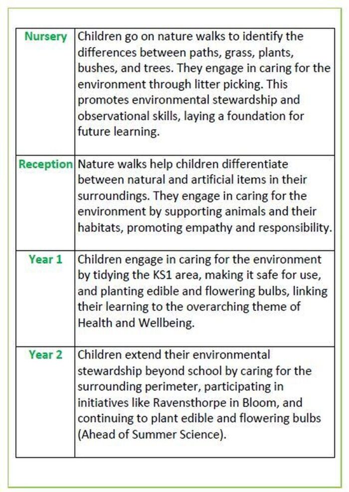 Furthermore, we maintain strong links with our Geography Leader, which allows us to create cohesive and interdisciplinary learning opportunities. Together, we design projects that connect geographical concepts with outdoor experiences, deepening pupils’ understanding of their environment. This collaborative approach truly enriches our Outdoor Learning ‘Enrichment’ Curriculum, providing a well-rounded educational experience that promotes active citizenship and a profound appreciation for the natural world.